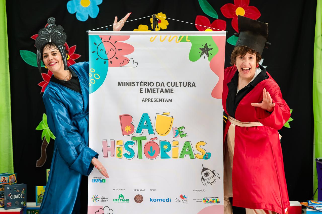 Lei de Incentivo à Cultura, o projeto ‘Baú de Histórias 2’ tem a produção da Cia Odu, apoio da Komedi e Sancell, com patrocínio da Imetame e realizado pelo Ministério da Cultura, Governo Federal União e Reconstrução.